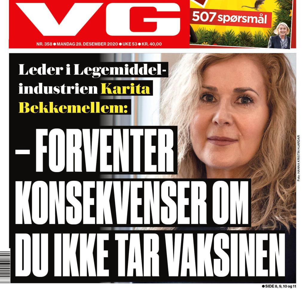 Bak denne kriminaliteten finner vi legemiddelindustrien og de oppkjøpte myndighetene / regjeringene rundt om på Jorda. Konsekvensen kan raskt bli at mange kan få helsa ødelagt av denne høyst eksperimentelle vaksinen. I den forbindelse vil jeg hevde at de komplett uansvarlige offentlige personene som har framsnakket og muliggjort frislipp av denne vaksinen må bli stilt til rette for den faren de utsetter det norske folk for. Jeg snakker her om slike som Karita Bekkemellem, Erna Solberg, Bent Høie, Espen Nakstad og en rekke andre, Dette er faktisk kriminalitet begått mot en hel befolkning, og en folkedomstol burde vært rett respons ovenfor disse.