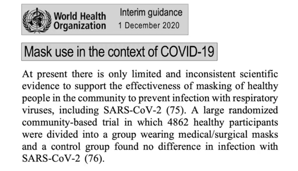 Til slutt: Merk at WHO den 6. juni gikk ut og anbefalte bruk av munnbleier «i lys av forløpende evidens» … Hvilken evidens er det WHO og regjeringene rundt om legger til grunn for bruken av disse absurde klutene i trynet? Sjekk følgende informasjon fra WHO: