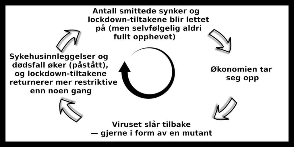 Med «synkroniseringen på verdensbasis» sikter jeg til det faktum at den beviselig feilslåtte lockdown-politikken (som har fortsatt etter at vi visste dette var feilslått!!!) skjedde noenlunde samtidig på tvers av grenser til land og kontinenter. Hvorfor brøt en hel verden med tidligere smittevernspraksis, hvor det tidligere alltid hadde vært snakk om å forvalte begrensede helsevern-ressurser OG sette inn tiltak mot sårbare grupper spesifikt? Hvorfor denne radikale og beviselig feilslåtte nye strategien? Og hvorfor FORTSETTER de med den nå som vi vet at dette er samfunnsdestruktivt?