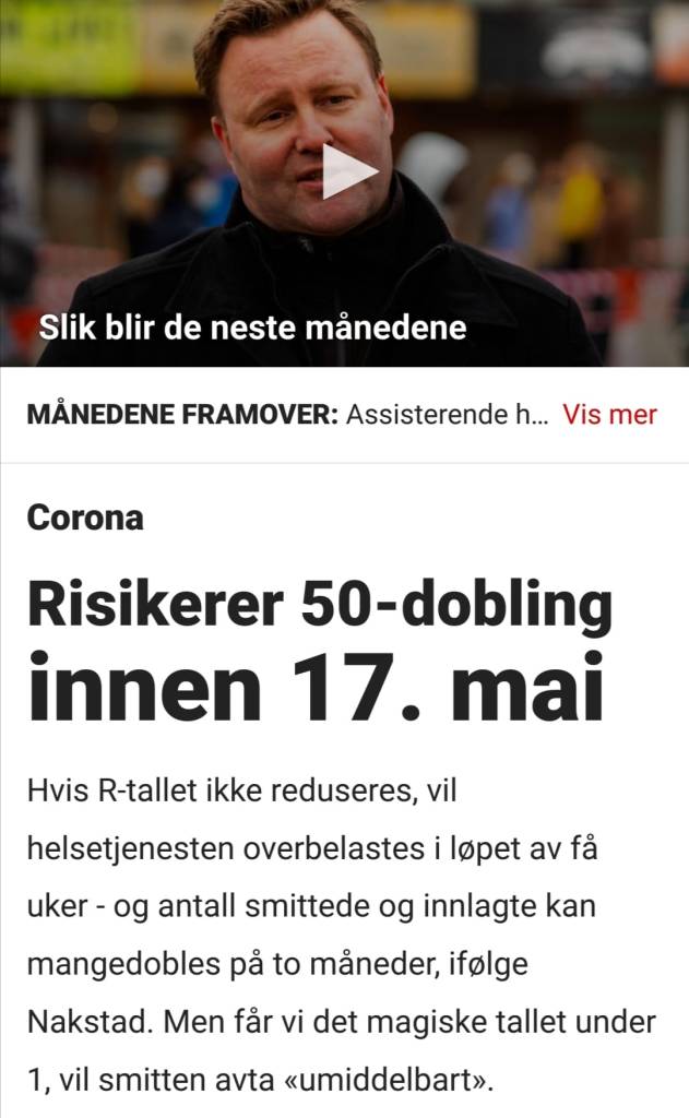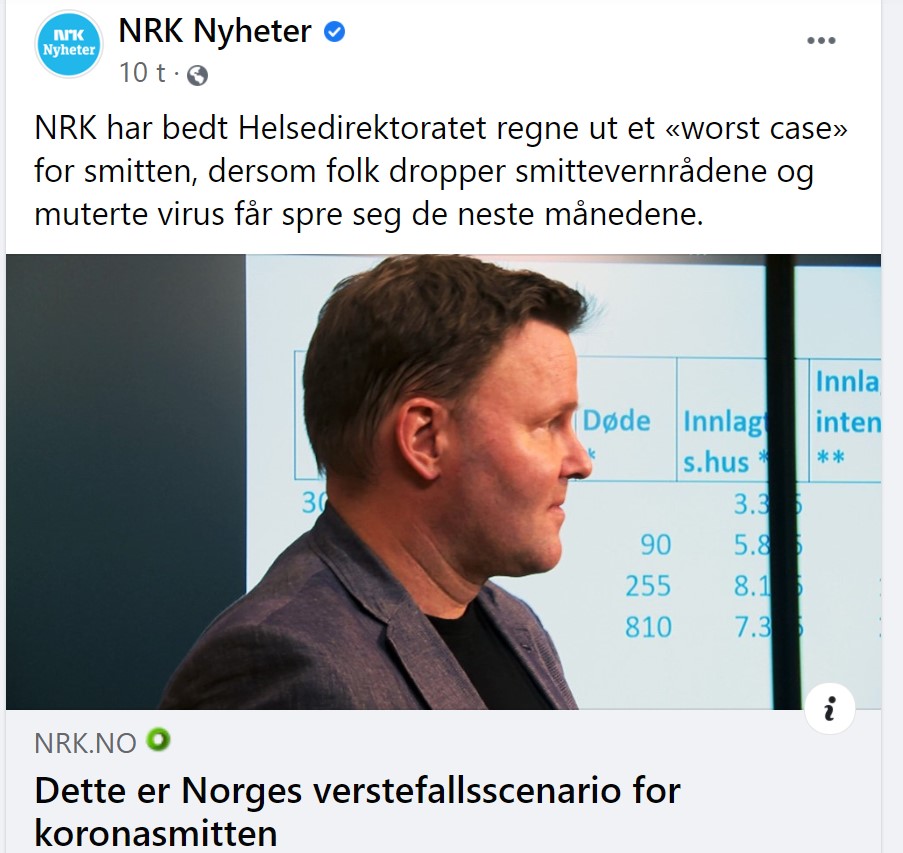 For å vise med ett konkret eksempel at det du sier vedrørende feil bruk av smittetall – kan jeg her legge frem lenke til hva kommuneoverlegen i Sandefjord bruker som argument for munnbindpåbud og andre såkalte smitteverns-tiltak i kommunen. Han og kommunen påstår at det kommuneoverlegen skriver er en medisinskfaglig begrunnelse. Leser man begrunnelsen blir det klart at man kun tar utgangspunkt i smittetall. Antall syke og evnt. hvor syke (eller døde) disse må være – er fullstendig utelatt. Hadde man sjekket begrunnelser de påståtte medisinskfaglige begrunnelsene fra andre kommuner – er jeg rimelig sikker på at man ville kunne observere akkurat det samme. Og dette smittehysteriet – hvem er ansvarlig for det i Norge – jo Folkehelseinstituttet og helsemyndighetene sentralt – samt regjeringen. Det merkelige er at ingen regjeringspartier protesterer.