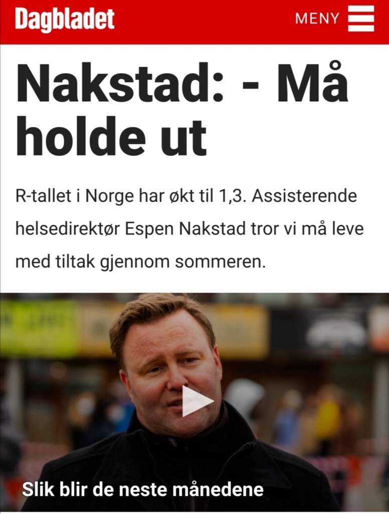 Jeg har for så vidt skrevet om dette før, men altså: Arkitektene bak koronasvindelen strammer til grepet i små inkrementer. Ingen steg må bli for store og lette å avsløre på veien fram mot det ultimate tyranniet, og man bruker gjerne strategien «to steg fram og ett tilbake». Nå ber Nakstad oss holde ut til over sommeren, og naive nordmenn velger sikkert å tro at restriksjonene blir hevet da. Det er selvfølgelig ikke planen til pakket som står bak svindelen. Planen er å konstruere opp noe underveis, kanskje et påstått farlig mutantvirus, som gjør at vi igjen «må» forlenge tiltakene. Planen er altså å fortsette i samme spor, med stadig flere og strengere smitteverntiltak.