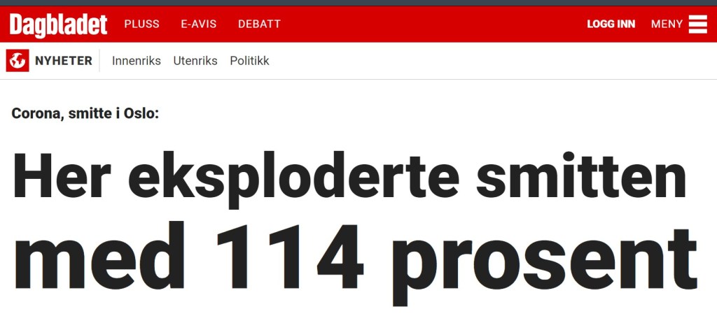 Har du lagt merke til hvordan riksmedia konstant bader oss i antall nye smittetilfeller? Når ble antall smittede det eneste interessante i medisinsk sammenheng? Hvorfor fokuseres det ikke lengre på alvorlighetsgraden til sykdommen og antall dødsfall, slik som før? Det nye i forbindelse med koronakrisen er nemlig et altoppslukende fokus på antall smittede. Bare legg merke til dette når du leser fryktpornoen i den udugelige rikspressen — i den grad du gidder lese dette søppelet.
