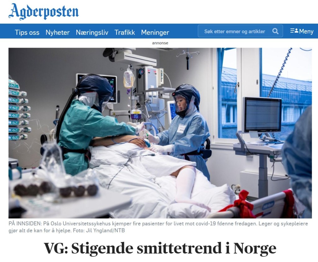 Å nei du min venn, sist jeg sjekket var det 22 pasienter lagt inn på intensiv behandling med Covid-19 (eller har de omdøpt sykdommen nok en gang?). Merk: dette er på landsbasis! Det er INGEN krise. Historikken ved norske sykehus viser også enten tomme sengeposter, eller så er plassene besatt – MEN da bare med noen aldeles få plasser avsatt denne pasientgruppen. Åtte sengeplasser til sammen i hele Rogaland meldte en kommentator, og det skulle ikke forundre meg om det stemmer.