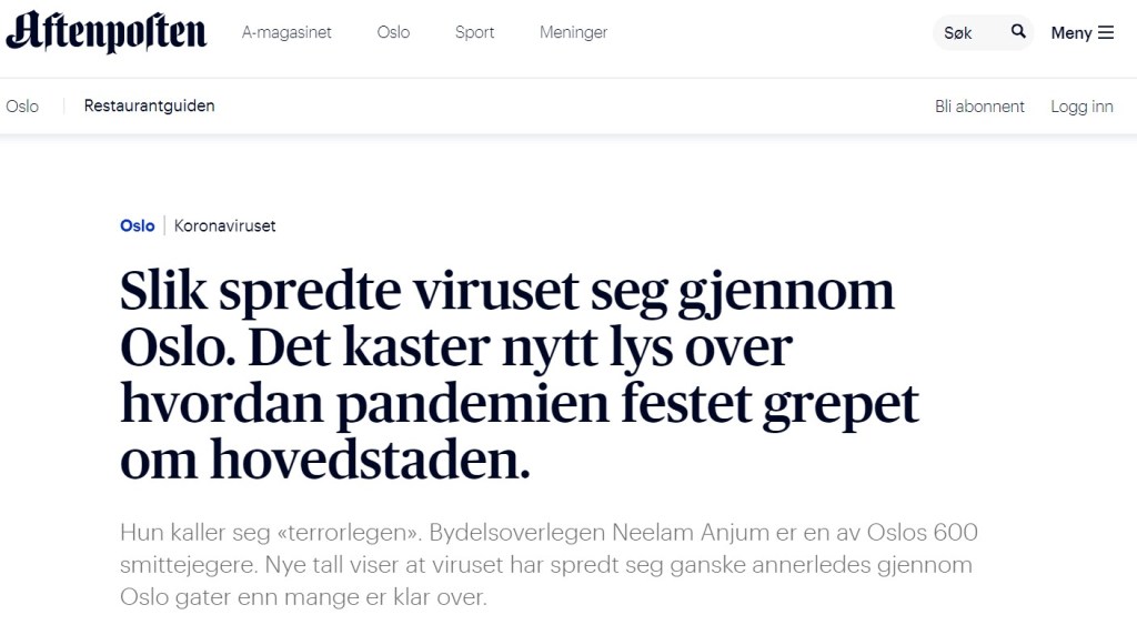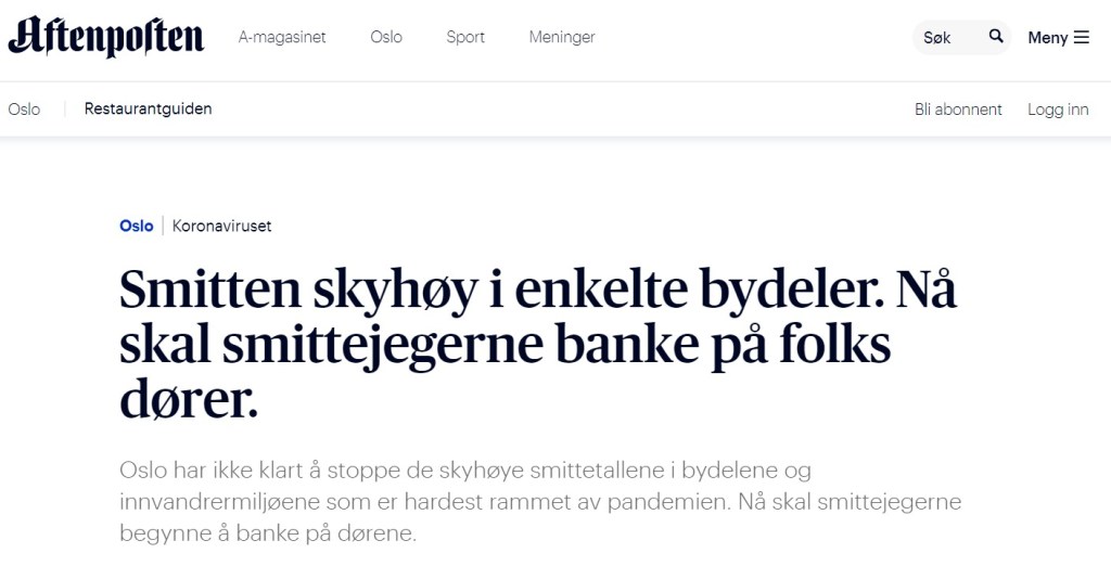 Her er et representativt utvalg av avisartikler som viser hvordan media fokuserer utelukkende på smitte: