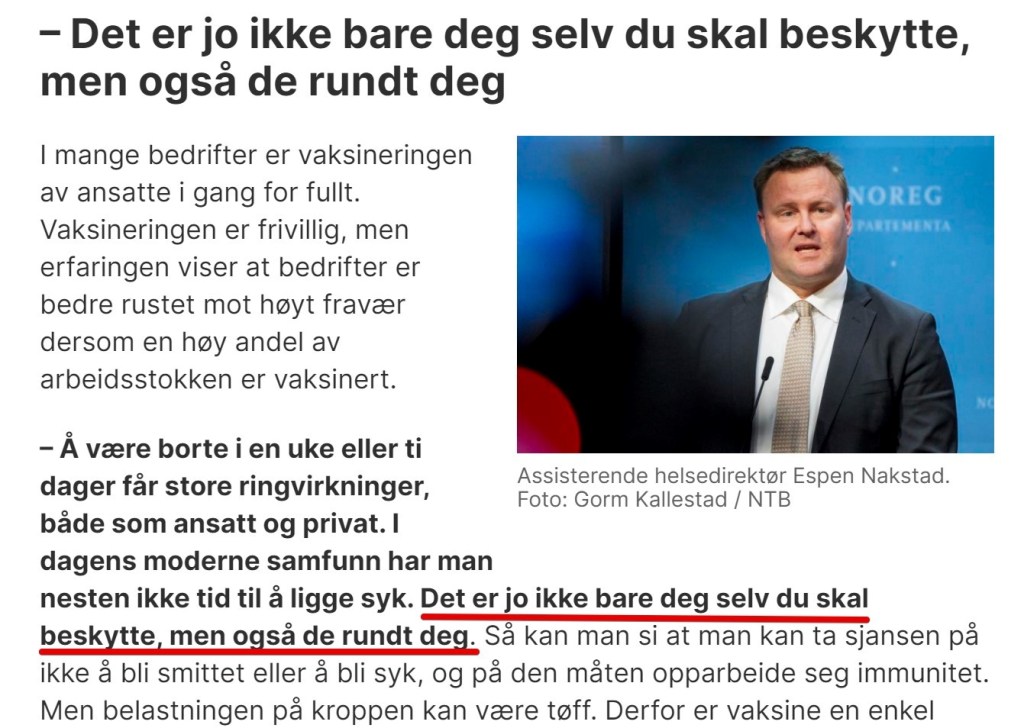 Bla-bla-bla-bla… Seriøst, hvorfor formidles ikke viktigheten av å holde vitamin-D nivå optimale gjennom vinteren? Finnes det noe annet som isolert sett styrker immunforsvaret vårt bedre ovenfor f.eks. influensa? Hvorfor anbefales KUN denne håpløse influensavaksinen? Den lages hvert år basert på biologisk tombola med små sjanser for å lykkes, og følgelig har influensavaksinene heller ikke hatt særlig effekt. Vel, ikke andre effekter enn å svekke de vaksinerte og gjøre de MER mottakelig ovenfor kommende sesongs influensa.