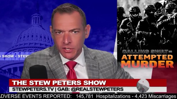 Følgende har skjedd: Den 4. april ringte en ukjent person politiet og ga seg ut for å være Stew Peters. Bedrageren som ga seg ut for å være Peters fortalte politiet at han hadde tatt et gissel, og at han nå planla å skyte dette gisselet. Politiet responderte med å sende et såkalt swat-team til Peters’ bolig. Dette er en spesial-enhet innen politiet som har til oppgave å håndtere særs vanskelige og farlige situasjoner. Som Peters selv sier: «Jeg kunne lett blitt drept! Mine barn var hjemme og kunne lett blitt drept!» Peters tolker denne hendelsen som et drapsforsøk på ham.