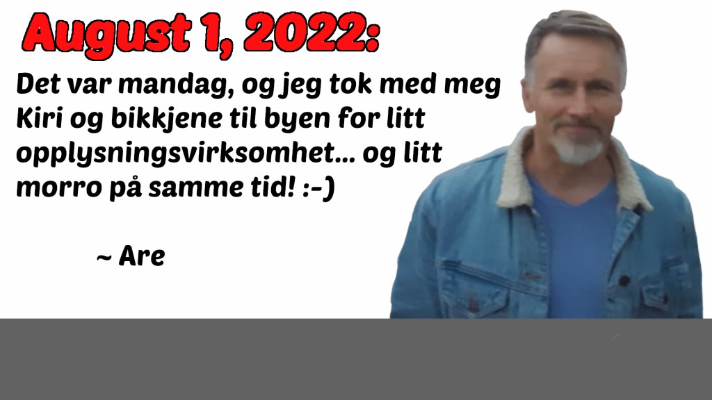 I går, mandag 1. august 2022, dro Kiri og jeg ned til Bergens hjerte for å så noen tankefrø hos bergensere og turister. Vi hadde tatt med en plakat med et budskap vi ønsker å få fram, og vi var viss på at mange kunne finne det provoserende. Men hva gjør man vel ikke for å få folk ut av komfortsonen og inn i tenkeboksen?  Uansett, det var kun én kvinne som kom med negative ytringer, resten var tommelen opp og beskjed om å «stå på!»…