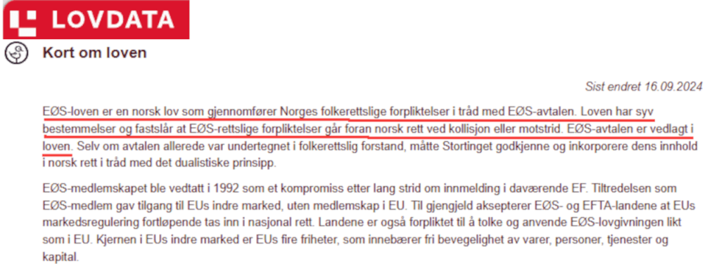 godta samtlige, siden noe annet ville medført traktatsbrudd. Norge er dermed styrt fra Brussel,